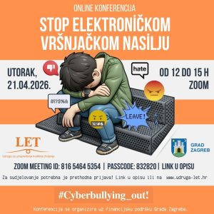 Udruga LET poziva stručnjake i zainteresiranu javnost na online konferenciju o cyberbullyingu, koja će se održati: